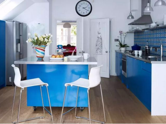 藍(lán)與白的結(jié)合,猶如西班牙蔚藍(lán)色的海岸與白色沙灘;希臘的白色村莊,在碧海藍(lán)天下,簡直是制造夢幻的絕佳搭配。用在廚房中,凸顯雅致和清新。