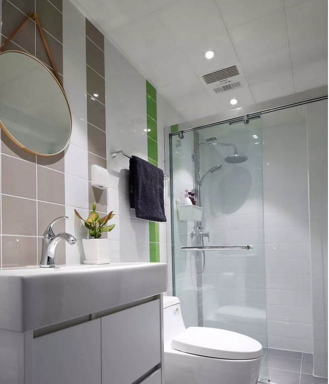 次衛(wèi)選用了三種顏色的墻磚,用不規(guī)則的顏色布局來打破沉悶感。