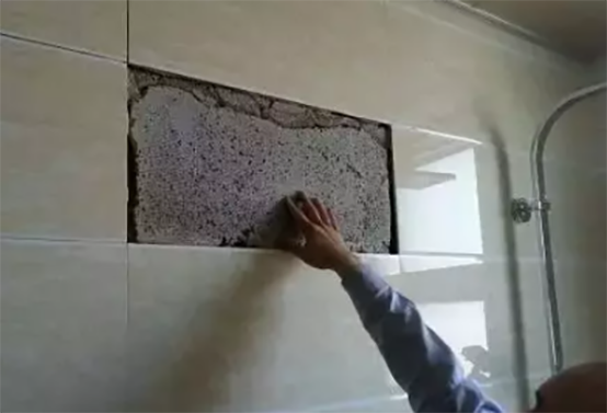 墻基鋪貼前沒有充分濕潤(rùn),造成水泥砂漿和磚體里的水被吸走,砂漿在凝固時(shí)間內(nèi)沒有足夠的濕度,無法充分粘結(jié)瓷磚。