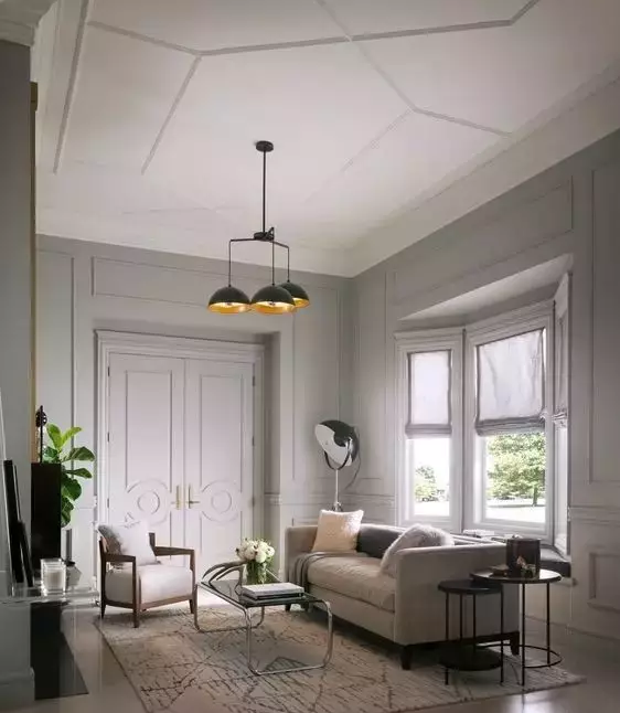 (1)突出“角”效果,讓墻邊與天花板實(shí)現(xiàn)顏色上的區(qū)分,從而達(dá)到裝飾的作用,這是陰角線(xiàn)效果之一。