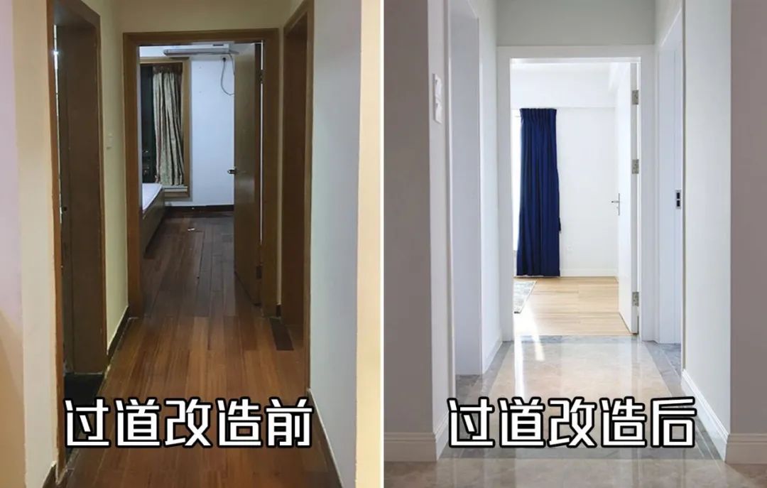 木地板換成地磚,耐磨防潮,而且客廳顯得更加亮堂,過道的瓷磚加邊線,以達到空間上的區(qū)別,并且增添了美感,也避免單調。