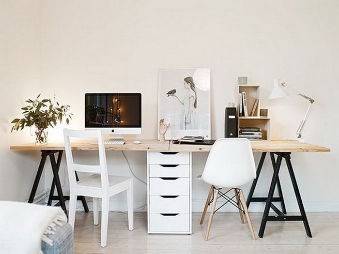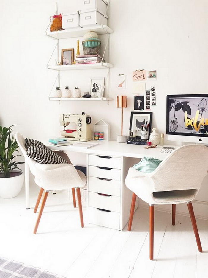 對(duì)于兩個(gè)人書(shū)桌布置,可以對(duì)著坐、并排坐或者背靠背,也可以L型轉(zhuǎn)角坐,看個(gè)人喜好和具體空間格局而定。