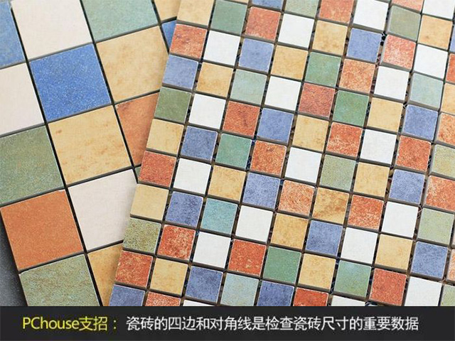 在購(gòu)買瓷磚的現(xiàn)場(chǎng)測(cè)量。用直尺或卷尺測(cè)量,瓷磚的四邊和對(duì)角線,檢查尺寸。