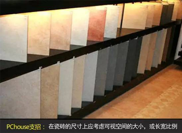 在瓷磚的尺寸上應(yīng)考慮可視空間的大小,如果客廳被家具遮擋的地方多,也就是地面使用時(shí),人的實(shí)際可視的大小,如果可視面積小的話,也應(yīng)考慮用小一點(diǎn)規(guī)格的。又或者考慮客廳的長(zhǎng)寬比例及大小,就效果而言,以瓷磚能全部整片鋪貼為好,就是指到邊盡量不裁磚或少裁磚,盡量的減少浪費(fèi),一般而言,瓷磚規(guī)格越大,浪費(fèi)也越大。
