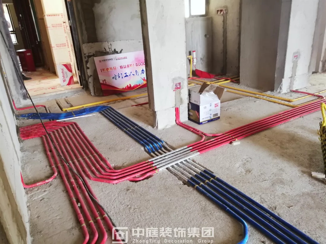 施工現(xiàn)場(chǎng)線管鋪設(shè)橫平豎直,按照集團(tuán)施工規(guī)定使用鐵皮卡扣固定,管和管之間留有足夠縫隙,以便鋪設(shè)地磚時(shí)水泥砂漿進(jìn)入管下,避免地磚后期出現(xiàn)空鼓;強(qiáng)弱電交匯處,用錫紙包裹保護(hù),可以有效防止對(duì)弱電產(chǎn)生信號(hào)干擾。