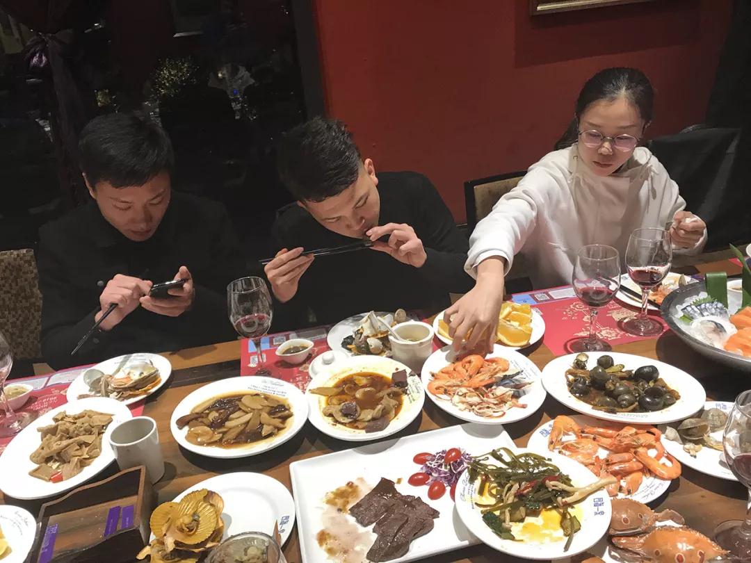 優(yōu)秀的家人們開(kāi)心享用美食,品嘗他們奮斗的果實(shí)