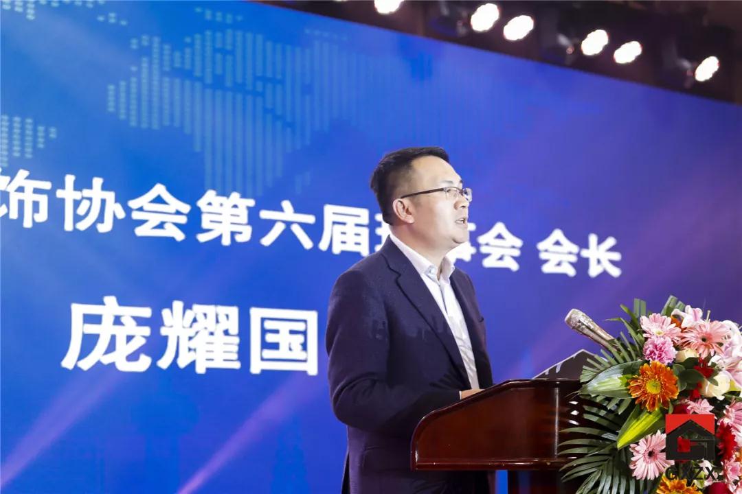 ▲集團(tuán)總裁丁胡代表廣西家裝企業(yè)發(fā)言