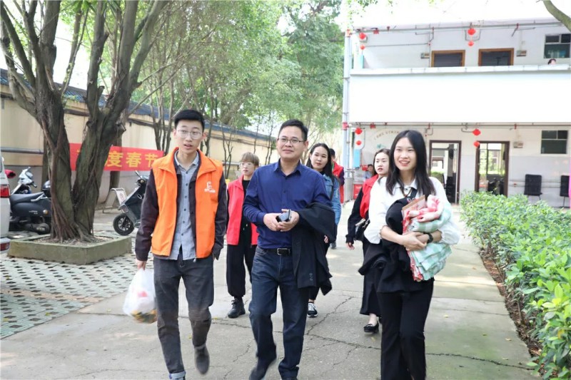 ▲集團副總裁湯炬峰(圖中)帶隊到達敬老院