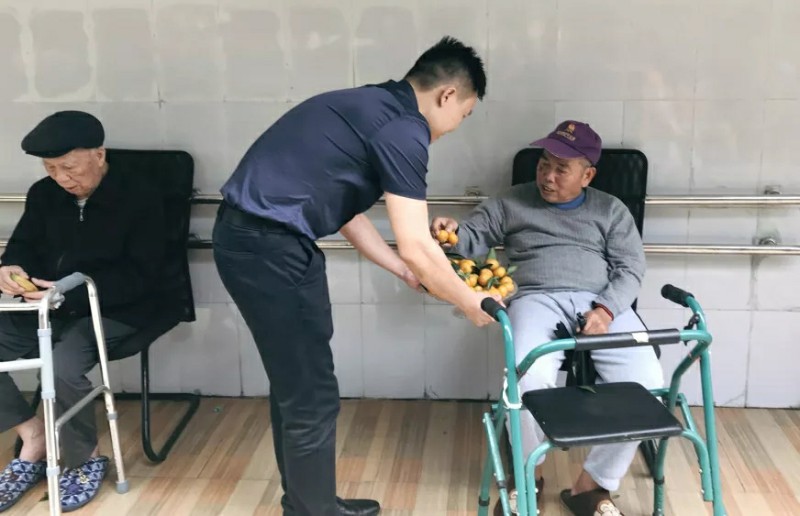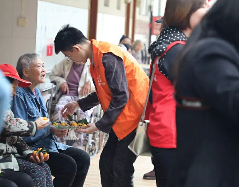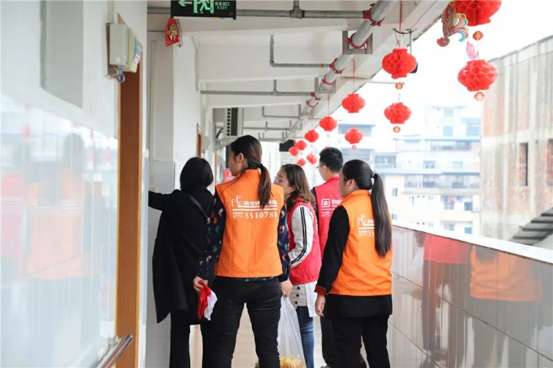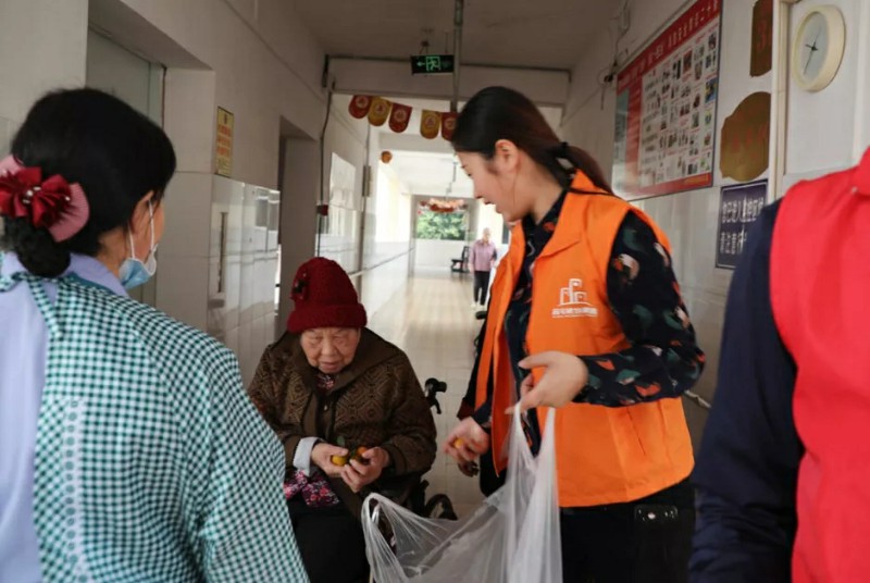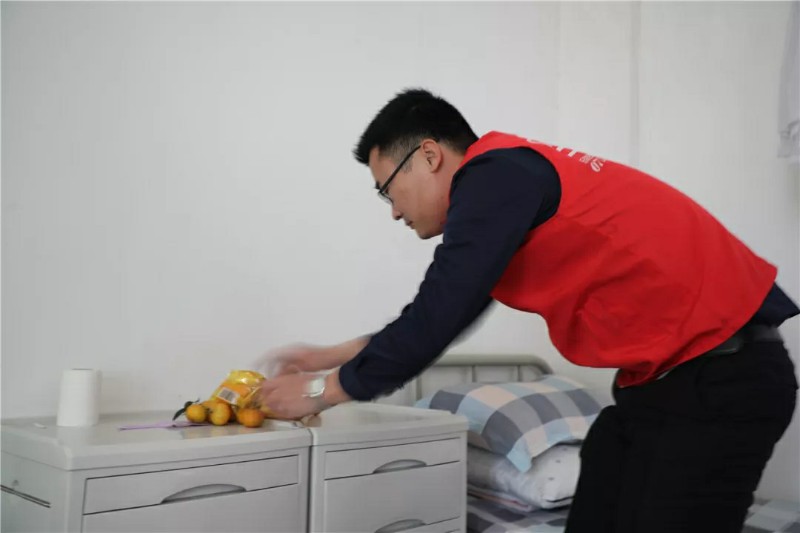 集團家人們帶著水果走訪宿舍,邀請老人們來參加活動;同時也給行動不便不能下樓的老人送去水果,關(guān)懷老人。