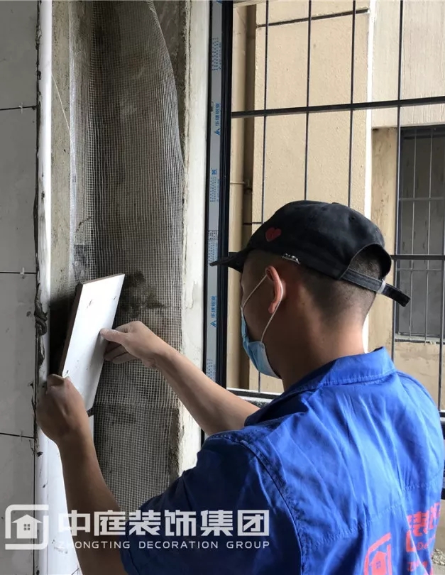 師傅貼磚排版考慮細心周到,確保窗口上沿用原始邊碰角整齊劃一。