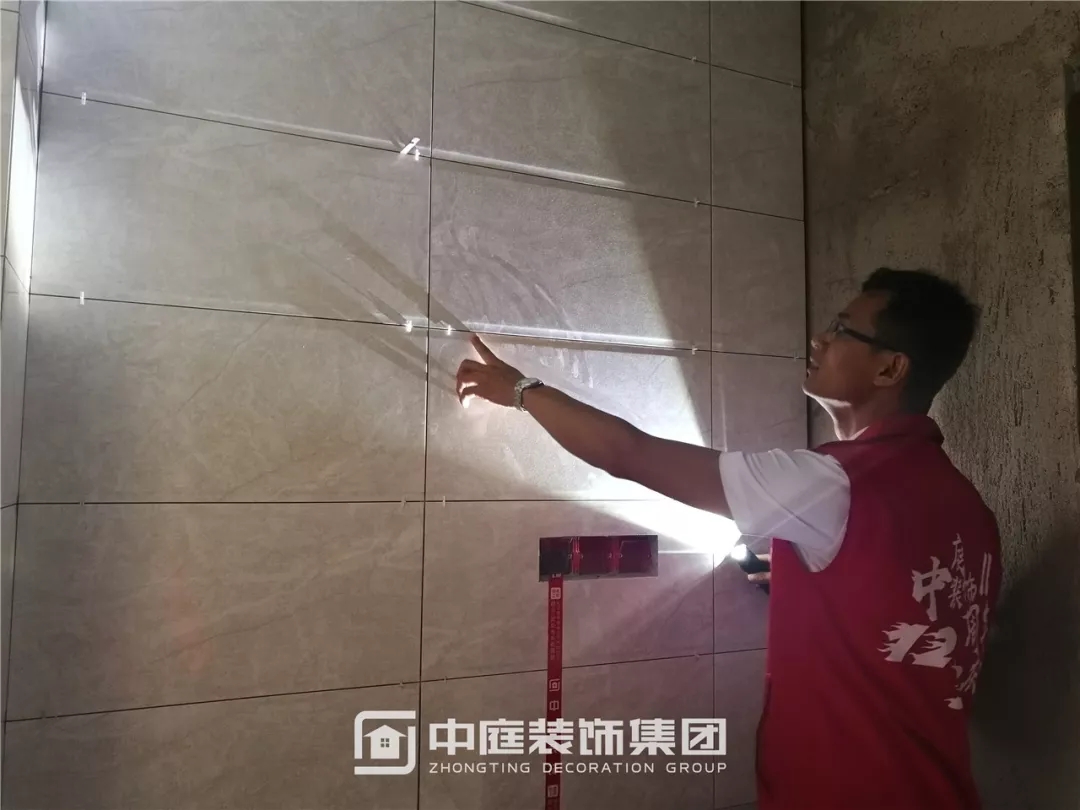 檢查瓷磚鋪貼是否平整干凈,有無錯貼漏貼