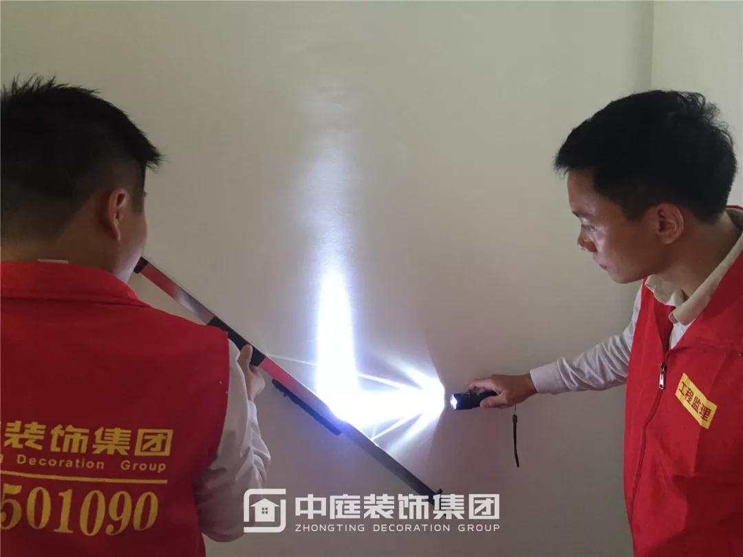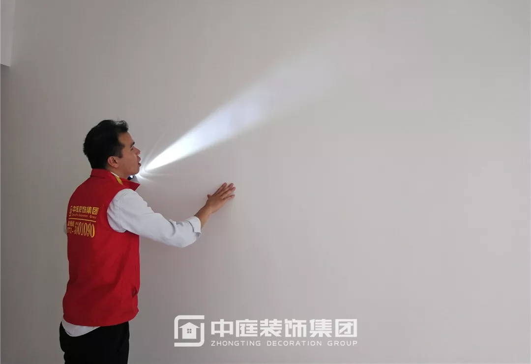 使用強光手電檢查墻面膩子施工是否達標
