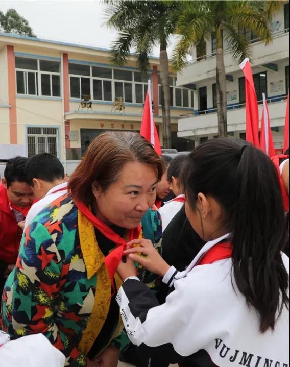 ▲副鎮(zhèn)長吳潔代表羅波鎮(zhèn)政府授予中庭裝飾集團(tuán)愛心企業(yè)榮譽(yù)牌匾,感謝中庭對羅波鎮(zhèn)薄弱小學(xué)的愛心善舉。