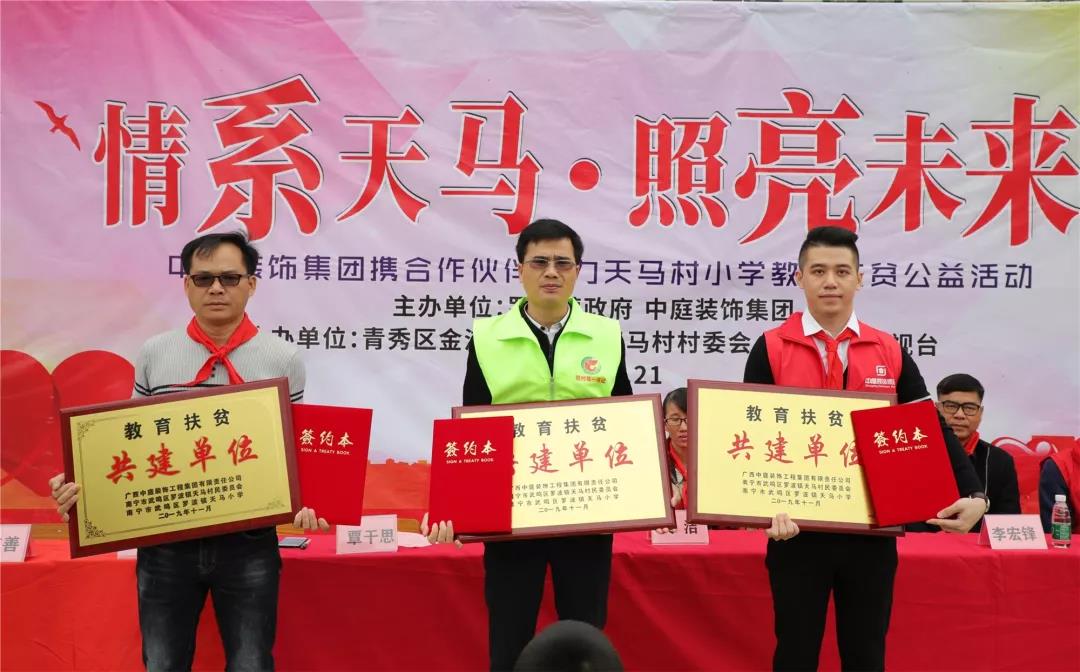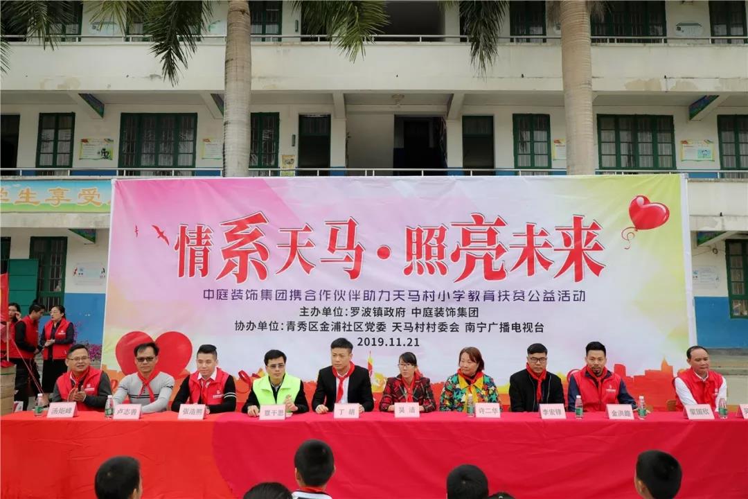 秉承著“源于社會(huì),回饋社會(huì)”的社會(huì)責(zé)任理念,在中庭裝飾集團(tuán)九周年慶之際,集團(tuán)攜手戰(zhàn)略合作伙伴組成愛心助力團(tuán)前往武鳴區(qū)天馬村天馬小學(xué)開展教育扶貧公益活動(dòng)。