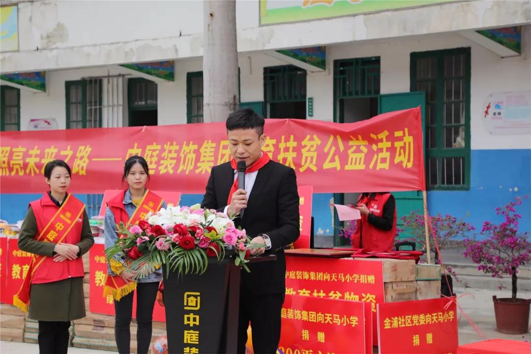 許書記表示,感謝中庭裝飾集團(tuán)組織的教育扶貧公益活動(dòng)。讓我們相聚在這里,深入貫徹習(xí)近平總書記“扶貧先扶志,扶貧必扶智”的重要指示精神,為天馬小學(xué)教育扶貧貢獻(xiàn)一份力量。