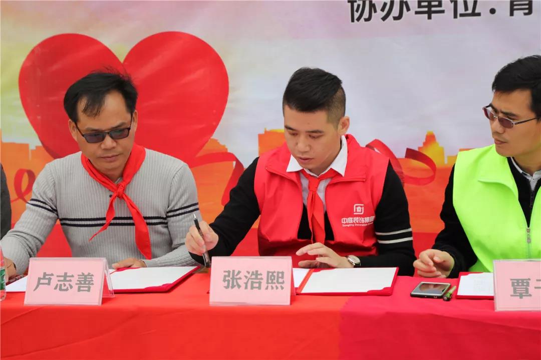 ▲集團(tuán)副總裁張浩熙與天馬村村委代表、天馬小學(xué)校長簽署建立教育扶貧共建單位協(xié)議