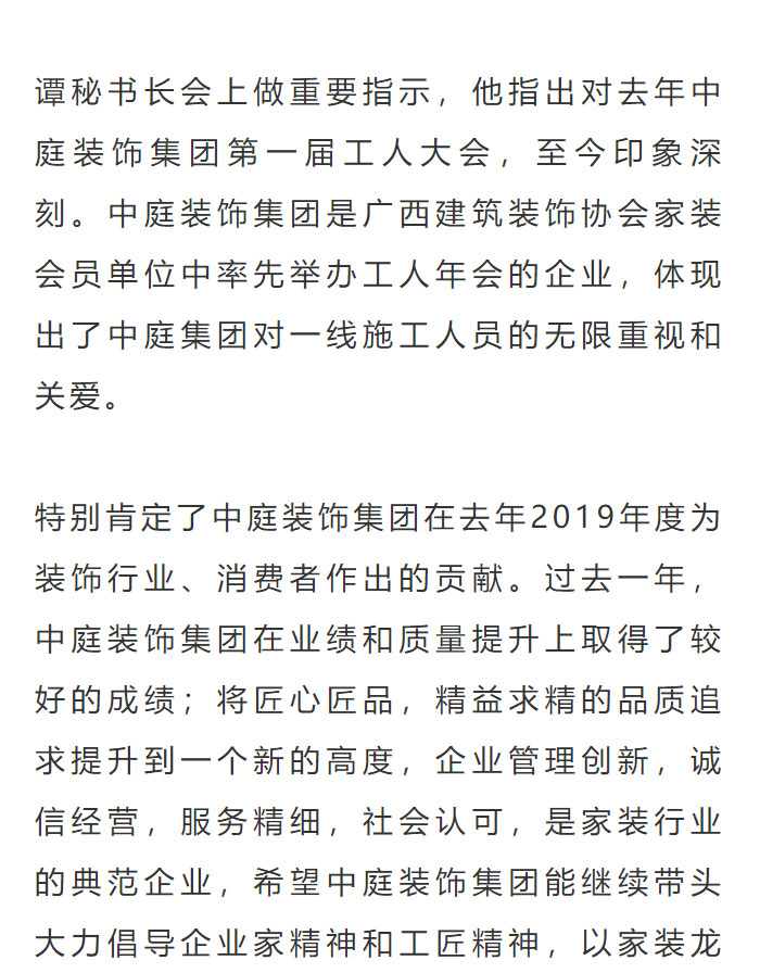 中庭裝飾集團(tuán)2019年度工人表彰大會(huì)圓滿舉辦