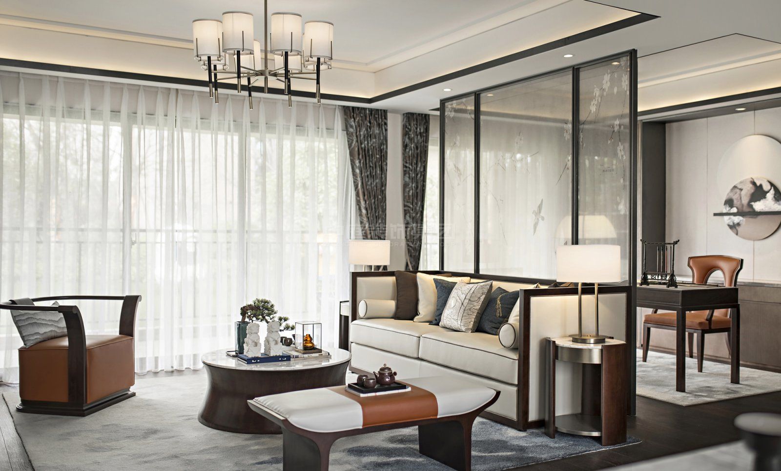 施工面積:120-150㎡| 設(shè)計(jì)風(fēng)格:新中式風(fēng)格