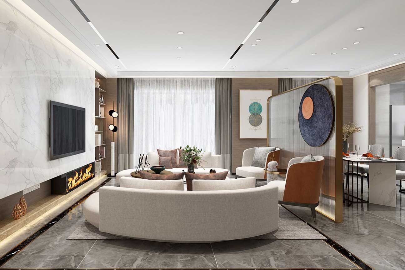瀏覽量:375這是一套123m2現(xiàn)代簡約風格案例,整體以簡潔大方為主,搭配上現(xiàn)代舒適的家具布置,簡潔流暢,布局簡潔大方,格調(diào)素雅、大氣。