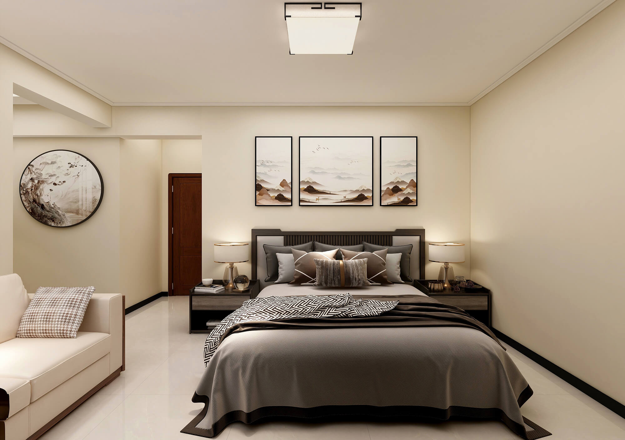 瀏覽量:449本案戶型為:4房2廳2衛(wèi),總面積143㎡。富有韻味的中式元素,在純粹潔凈的空間色調(diào)中,不斷映襯古韻的柔和禪韻。返璞歸真,將一份豁達(dá)與悠然的心境賦予其中,傳遞居住者對(duì)靜與雅的追逐?,F(xiàn)代擺件的點(diǎn)綴,為整個(gè)空間增添現(xiàn)代感。