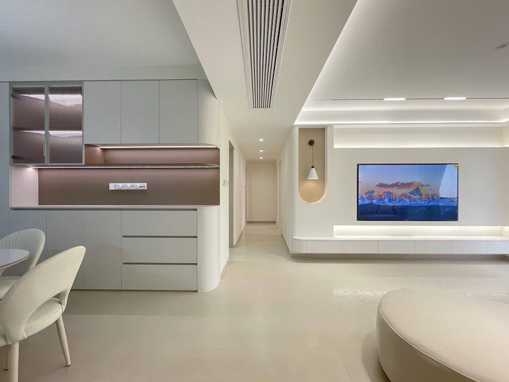 瀏覽量:1118空間整體奶白色調(diào)裝飾,耶為空間帶來了充沛的光線,設(shè)計師整體結(jié)構(gòu)上不設(shè)明顯的界定,在裝修次材料、色彩搭配上逐步描述空間的構(gòu)成關(guān)系。