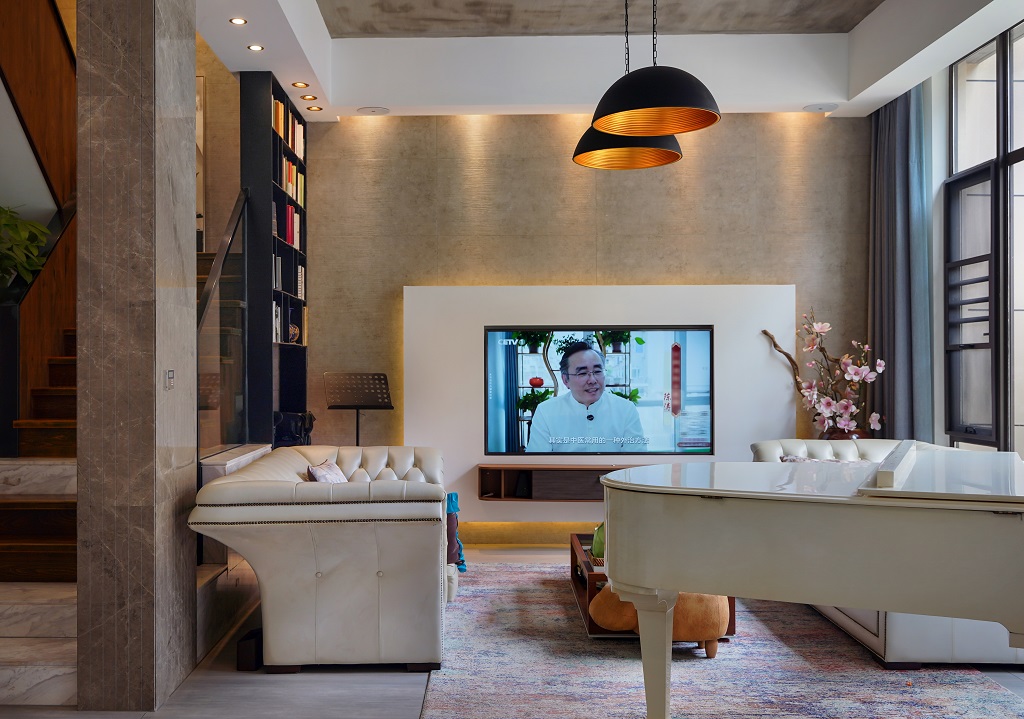 瀏覽量:121這套房子裝修風(fēng)格是工業(yè)風(fēng)與輕奢風(fēng)的巧妙融合,日常又不失格調(diào)。水泥質(zhì)感的吊頂保留了工業(yè)風(fēng)的粗獷感,搭配暖黃色的吊燈,瞬間讓空間溫馨起來。墻面采用質(zhì)感石材與簡(jiǎn)約板材結(jié)合,電視背景墻的設(shè)計(jì)簡(jiǎn)潔大氣。家具選擇了皮質(zhì)的輕奢款沙發(fā),觸感舒適且顯質(zhì)感。樓梯區(qū)域很有特色,木質(zhì)臺(tái)階搭配金屬扶手,旁邊的綠植和書架為空間增添了生機(jī)與文藝氣息。還有那架白色鋼琴,讓整個(gè)家在日常中多了一份藝術(shù)氛圍,無論是休閑還是待客,都能感受到這份融合了工業(yè)硬朗與輕奢精致的舒適日常。