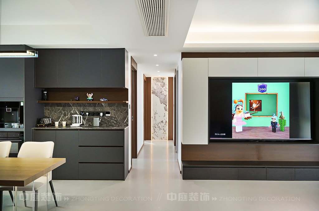 瀏覽量:58客廳以現(xiàn)代黑白灰極簡(jiǎn)風(fēng)格為核心,大面積白紗簾引入自然光線,黑色皮質(zhì)沙發(fā)質(zhì)感高級(jí)。開(kāi)放式布局,深灰櫥柜與木質(zhì)餐桌形成材質(zhì)對(duì)比,線性吊燈提升精致感,功能與美學(xué)兼具,營(yíng)造現(xiàn)代簡(jiǎn)約的烹飪用餐氛圍。輕柔窗簾與柔和燈光,打造靜謐休息空間。精致的材質(zhì)選擇與合理的功能規(guī)劃,詮釋了“少即是多”的現(xiàn)代簡(jiǎn)約居住美學(xué)。